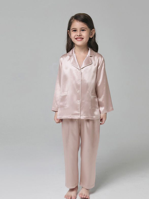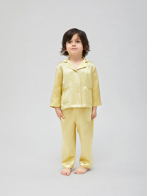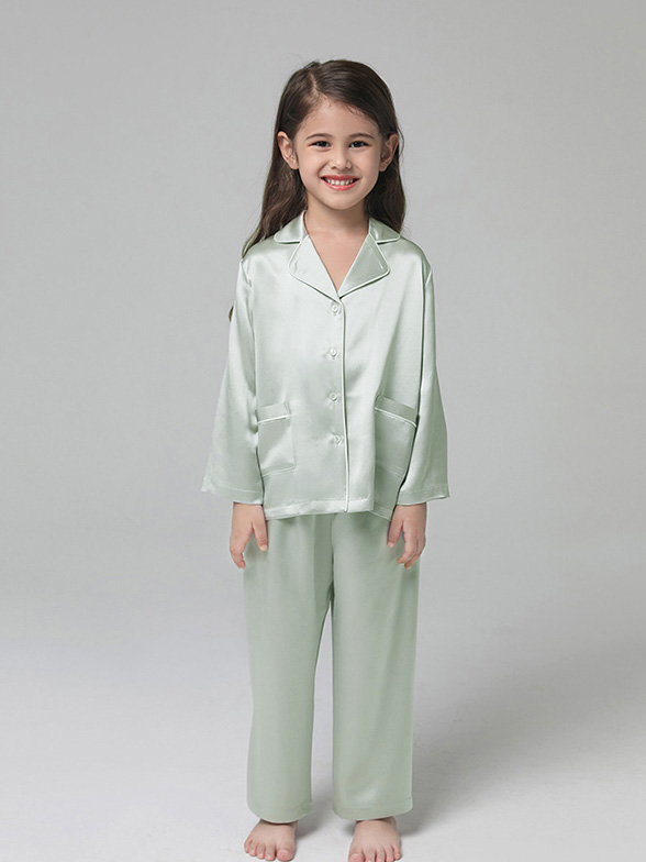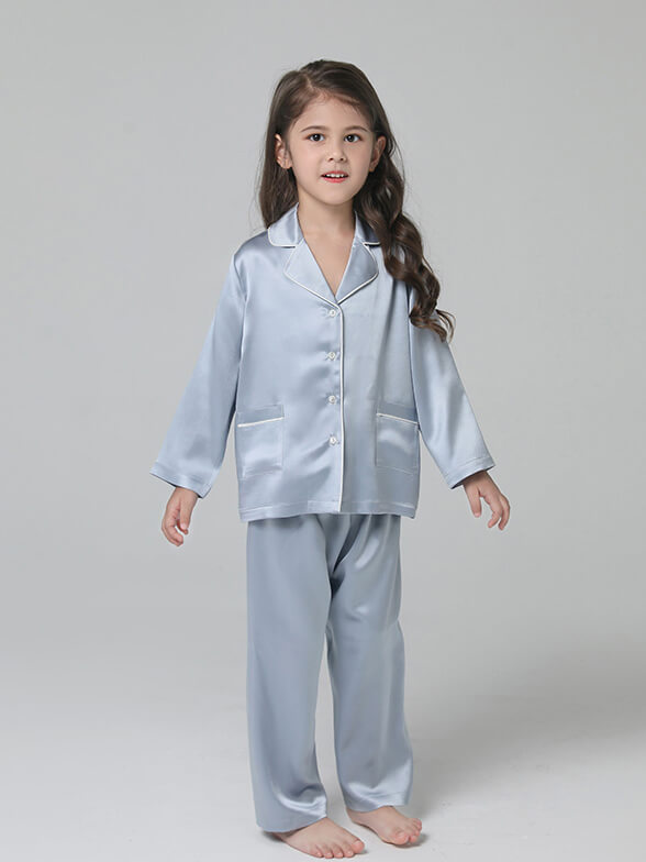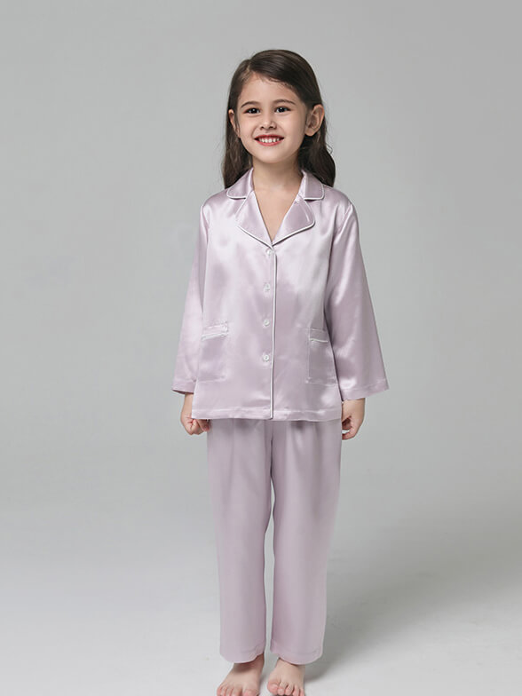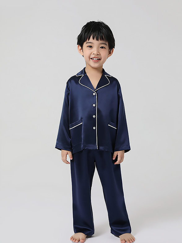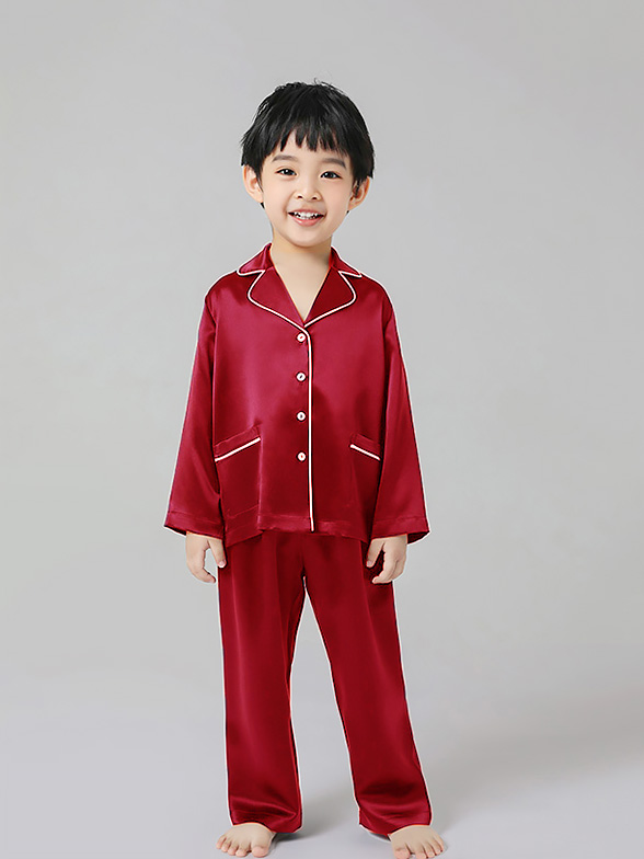 • 22 Momme Classic Long Sleeve Trimmed Silk Pajama Set for Women