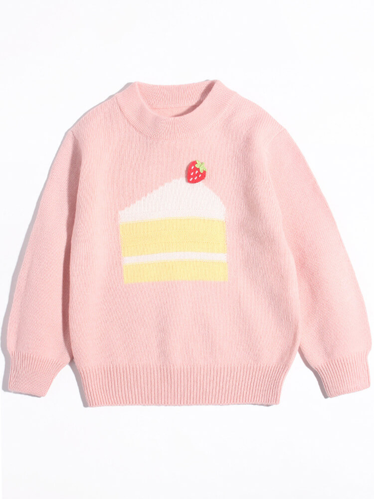 Kids Strawberry Cake Pink Cashmere Crew Neck Sweater