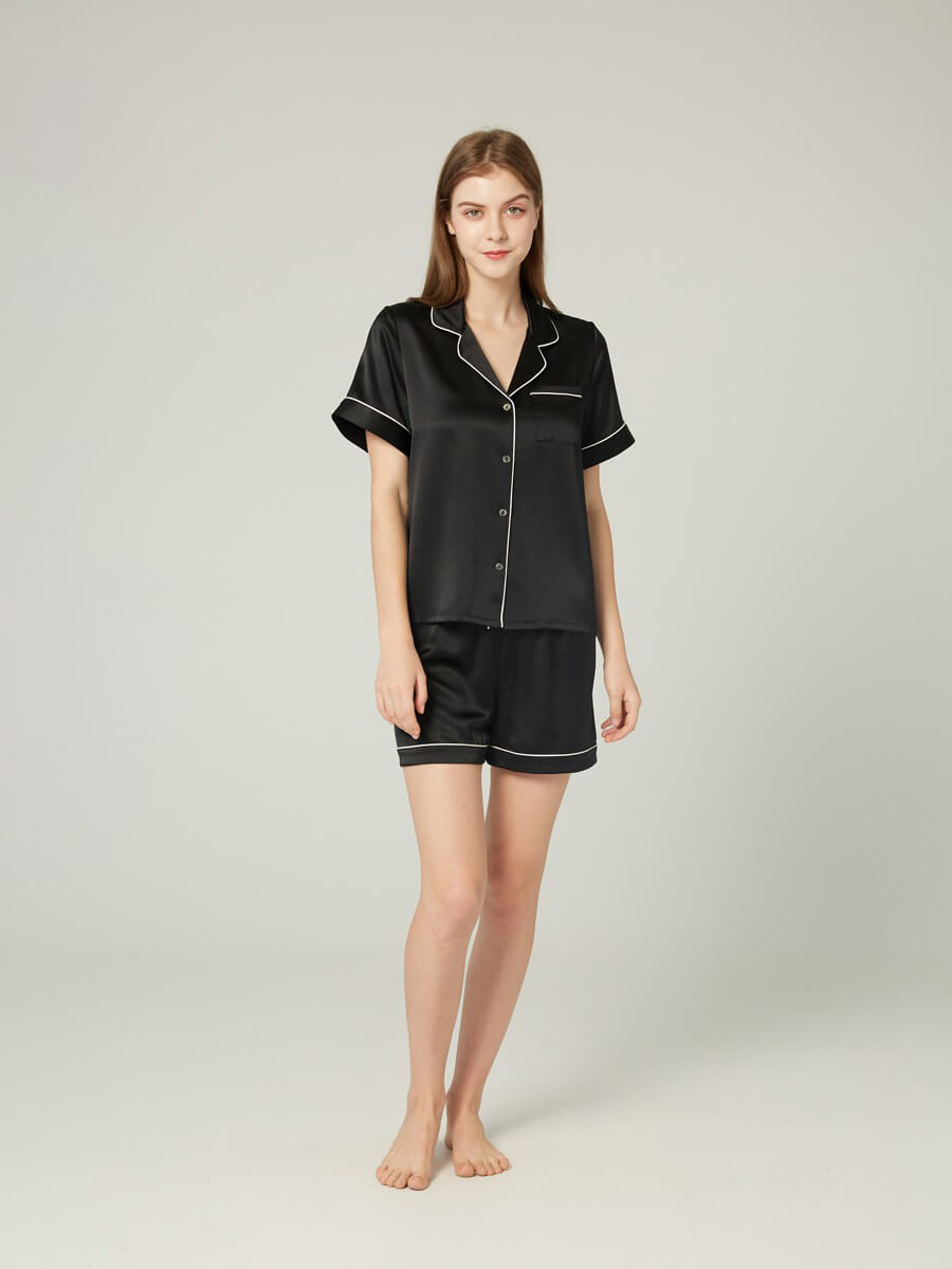 Style: Two-Piece Silk Pajama Set for Women Material: 100% Pure Grade 6A 22 Momme Mulberry Silk, Glossy, Smooth, Soft International Certification:... more info
